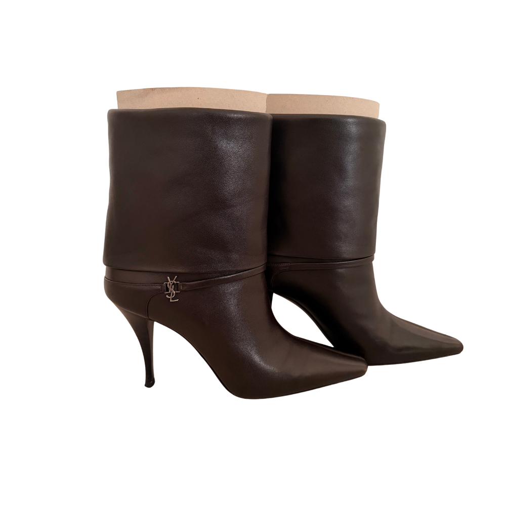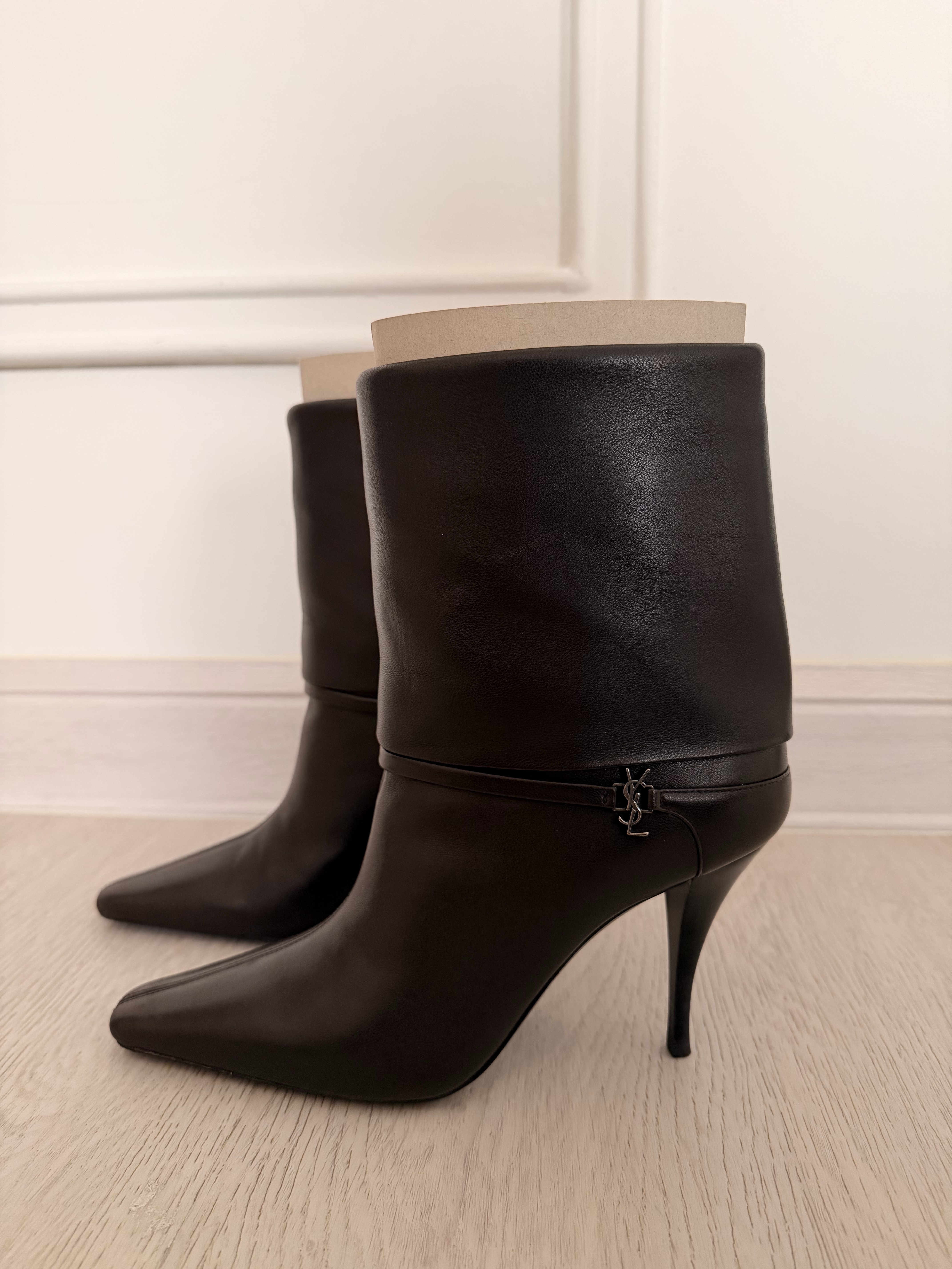 Saint Laurent Niki Leather YSL Buckle Ankle Booties