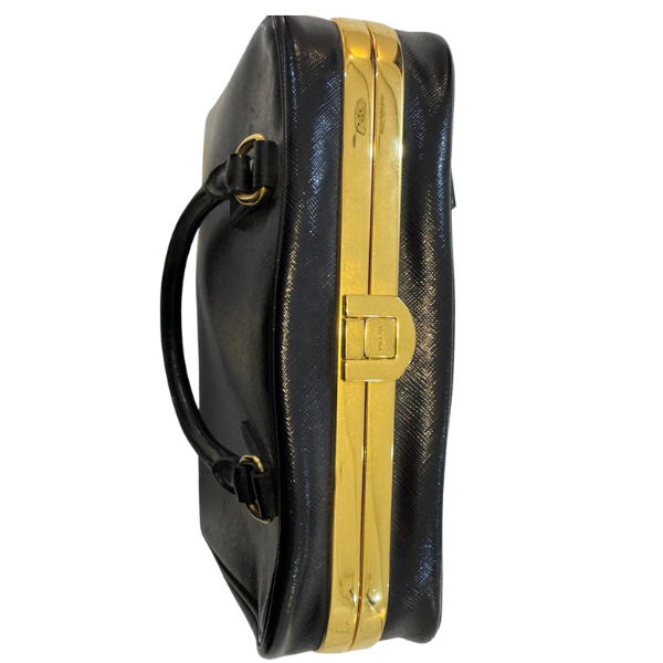 PRADA – Saffiano Lux Black Leather with Gold Hardware Condition: Excellent No Accessories Included