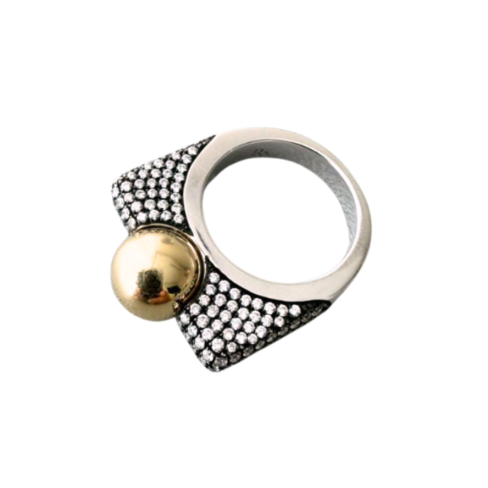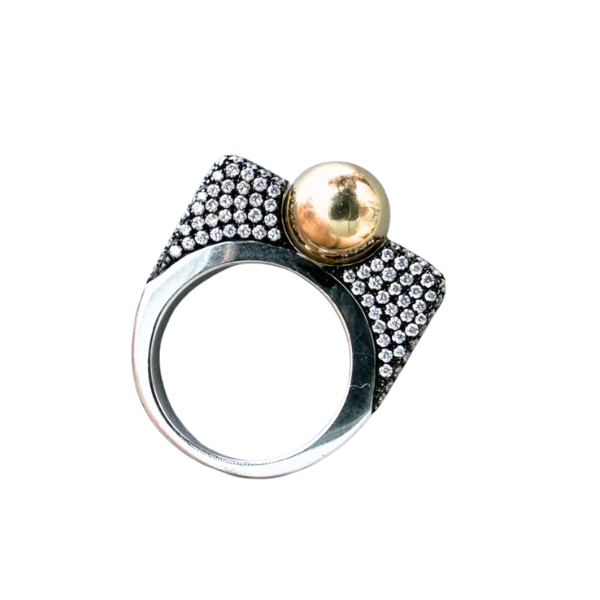 Rainbow K Ball Ball Pavé Ring – Black, Gold (Size 48)