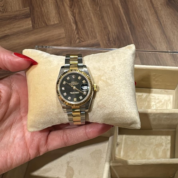 Rolex Rolex Lady-Datejust 31 mm Black Diamond Dial Watch Gold and Steel / Automatic Model 2015 Used – Excellent Condition Accessories: Warranty Card
