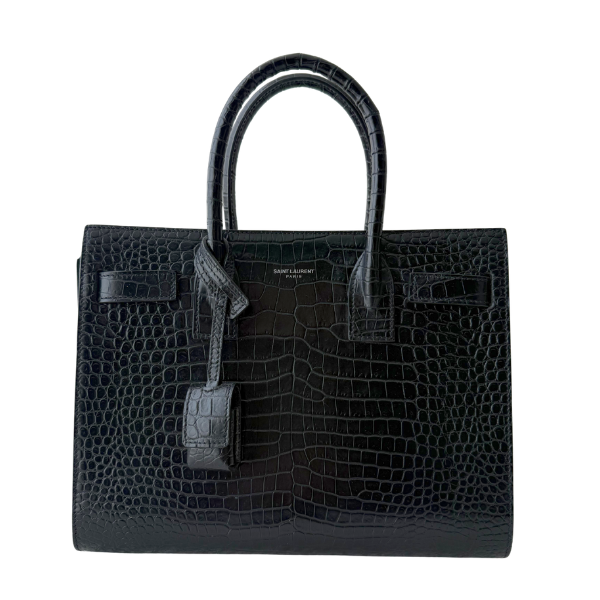 SAINT LAURENT Sac De Jour Baby Tote Bag in Croc-Embossed Leather Condition: Used Accessories: Card and Dust Bag