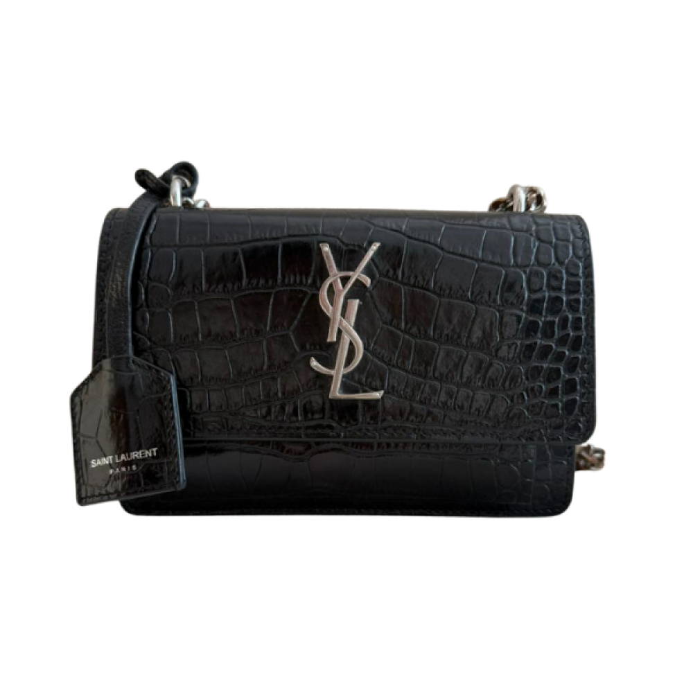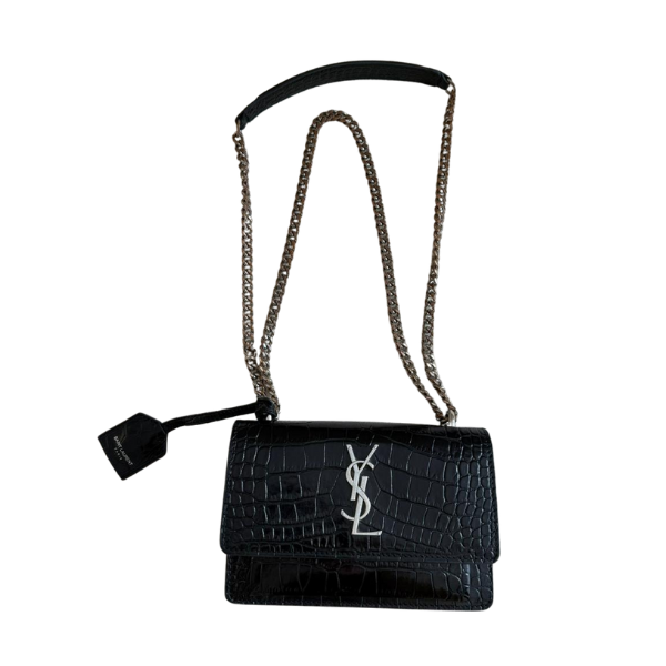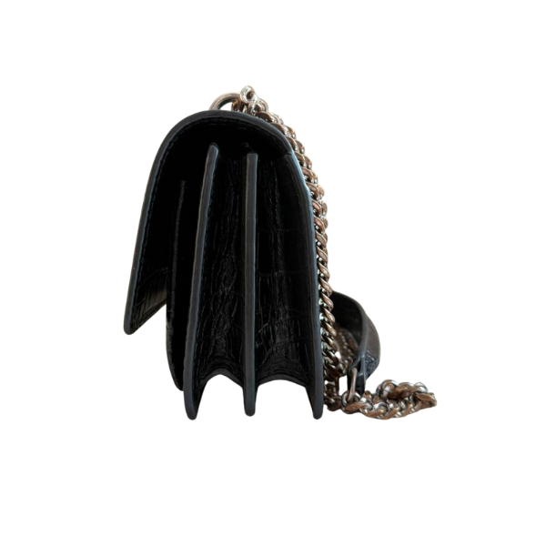 Saint Laurent Paris Black Croc-Embossed Leather Sunset Wallet on Chain