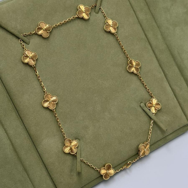 Van Cleef & Arpels Vintage Alhambra 10 Motif Station Necklace – Textured 18K Yellow Gold