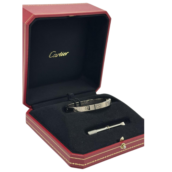 Cartier 18K White Gold Love Bracelet Condition: Used Size: 16 (Wide Model) Includes: Box + Warranty Card