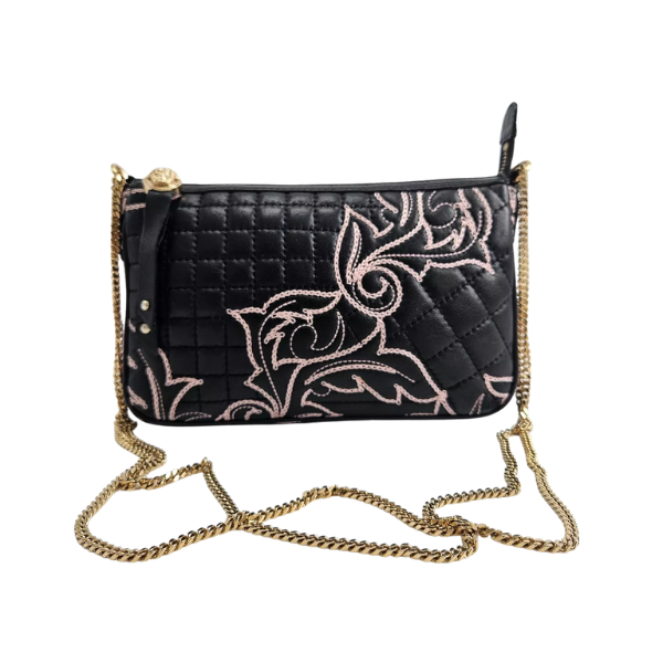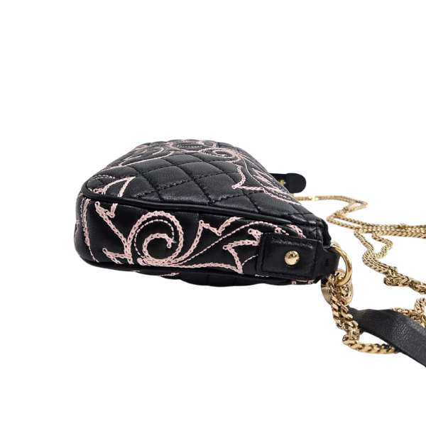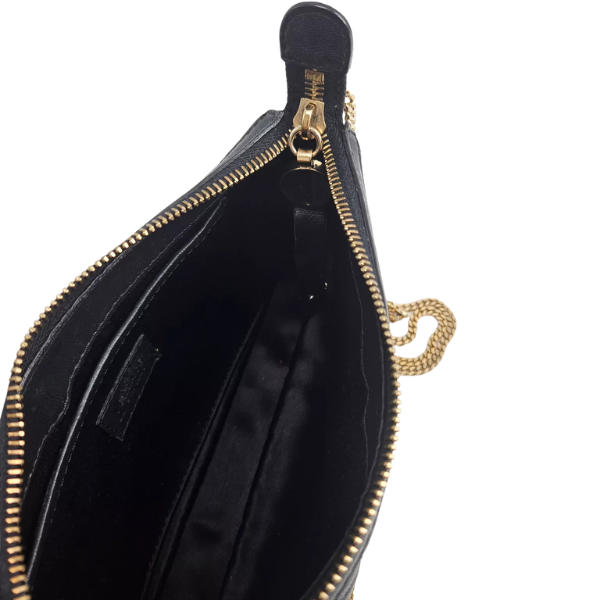 Condition: ExcellentBlack quilted faux leather Flap top with fabric-lined interior Chain strap Minor creases and scratches Dimensions: 13 × 3 × 21 cm