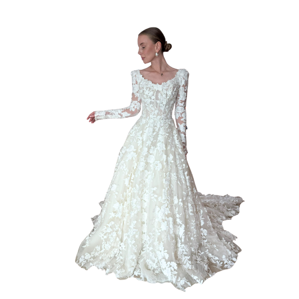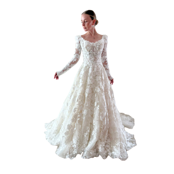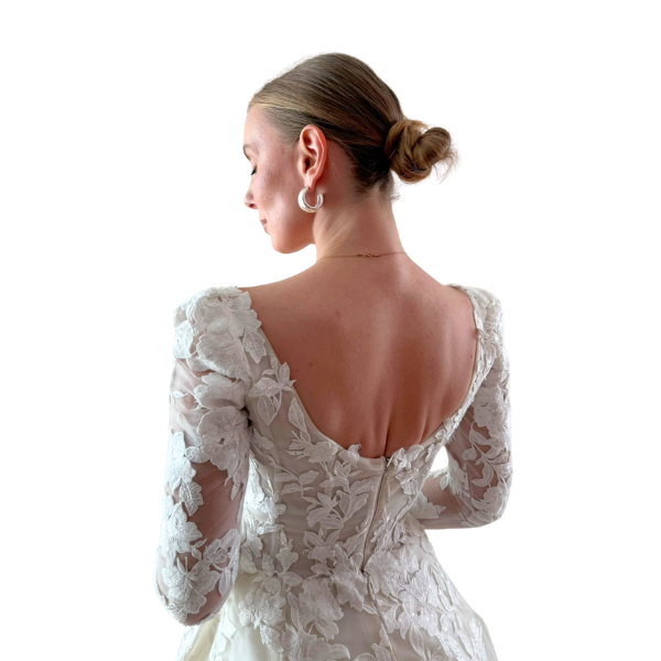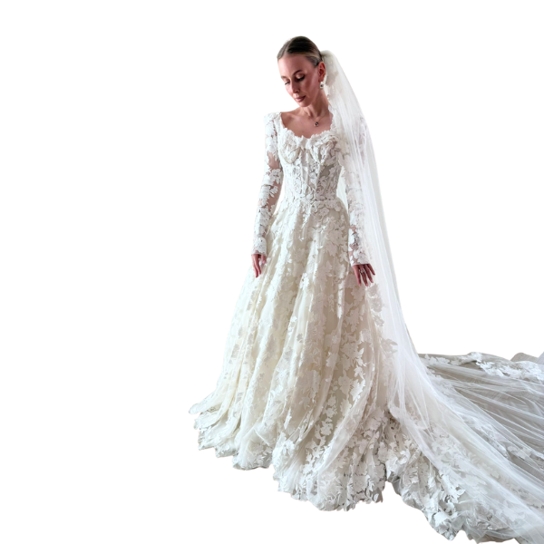 Size: S Condition: Excellent, worn once for 3 hours Selling Price (negotiable) Purchase Date: January 2025 Includes: Veil (chignon) and volume skirt Note: Professionally cleaned and stored in a special ba
